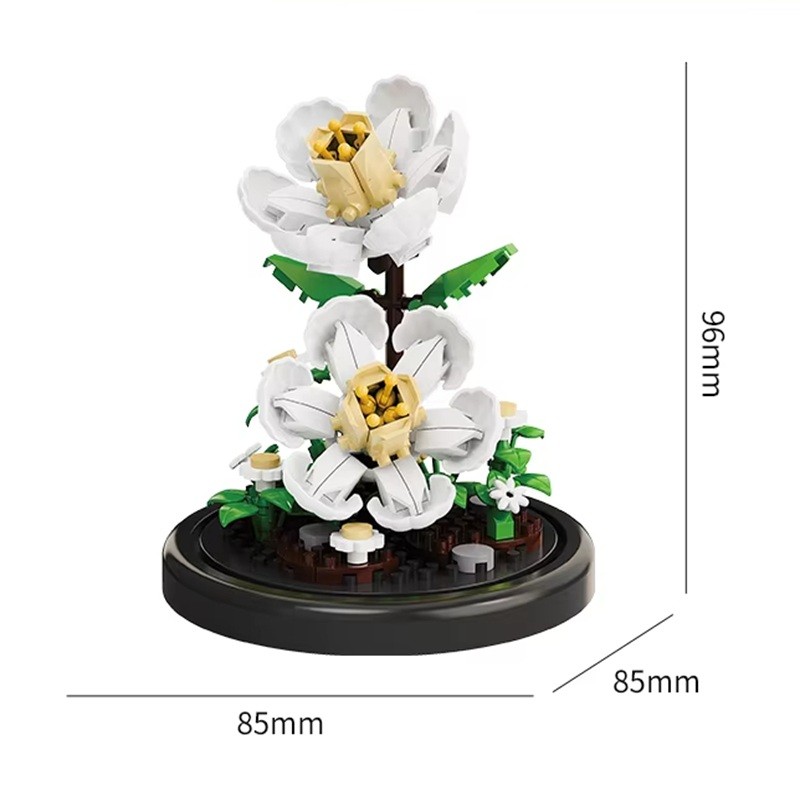 Baue deine eigene weiße Kamelie aus Mikro-Blöcken und verschönere dein Zimmer mit einer zarten Dekoration, die sowohl Kinder als auch Erwachsene erfreut und die Fantasie sowie Geduld fördert. Vollständige Beschreibung