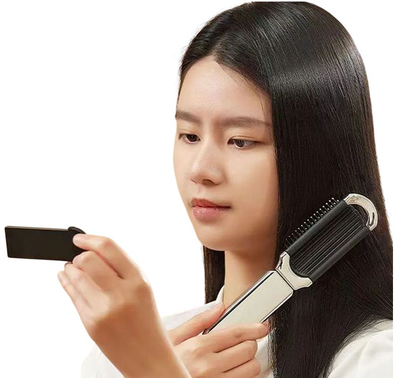 • Integrierter ausziehbarer Spiegel ist fester Bestandteil des Kamms