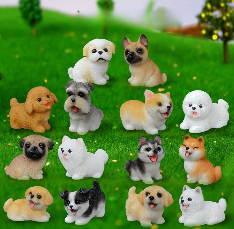 Niedliche Mini-Figuren von Welpen aus Harz, geeignet für Dioramen, Mikrowelten, Modellgärten oder zur Dekoration von Szenarien. Vollständige Beschreibung