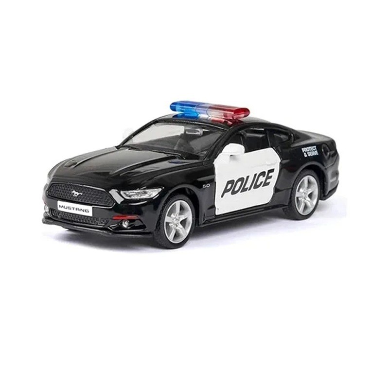 Realistisches Modell des Polizeiford Mustang aus Metallkarosserie und Kunststoffchassis. Ideal zum Spielen, Sammeln und als stilvolles Geschenk. Vollständige Beschreibung