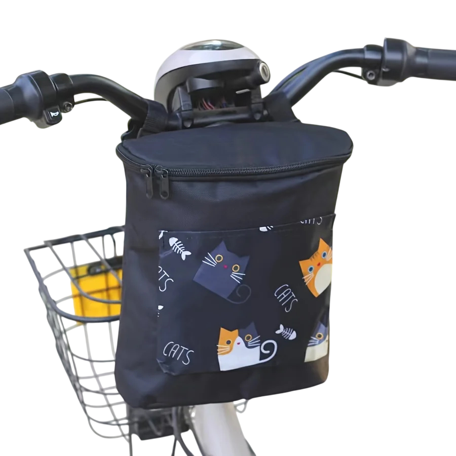 Praktische Fahrradtasche mit Katzenmotiv aus strapazierfähigem Nylon bietet ausreichend Platz für Zubehör und persönliche Gegenstände. Vollständige Beschreibung