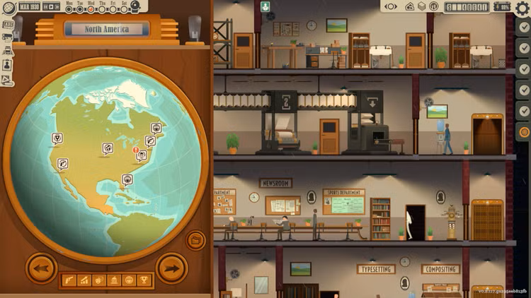 In News Tower werden Sie einige Schlüsselmomente der 30er Jahre des 20. Jahrhunderts verfolgen, aber es liegt nur an Ihnen, ob Sie sie abdecken und vielleicht sogar beeinflussen.