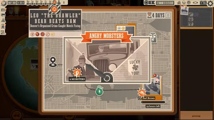 Viele Nachrichten bieten verschiedene Wege der Untersuchung und enthüllen unterschiedliche Versionen der Geschichte. Senden Sie Ihren Reporter auf die Reise, aber beachten Sie die Risiken und Belohnungen jedes einzelnen: Die Nase in die Mafia zu stecken, kann zu „Angeboten“ führen, die man nicht ablehnen kann…