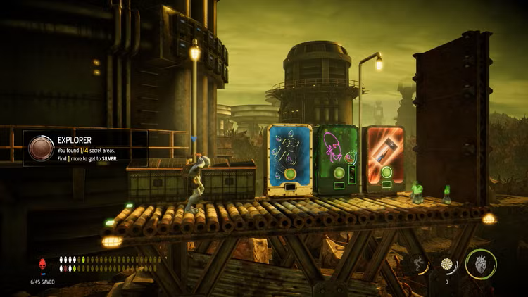 Sie spielen als Abe, den widerwilligen Helden, der unwissentlich eine Rebellion ausgelöst hat und nun seine mudokonschen Kollegen im Kampf um Freiheit gegen das Magog-Kartell und die herrschende Macht des Planeten anführen muss.