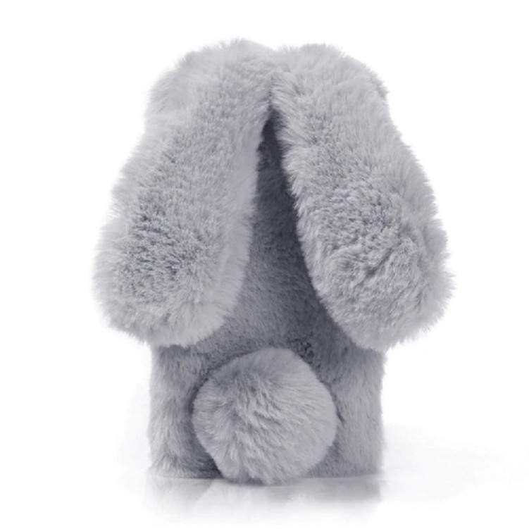 Die Rückseite ist mit einem Hasenimitat versehen, das Ohren und einen Schwanz hat. Das Fell fühlt sich sehr weich an.