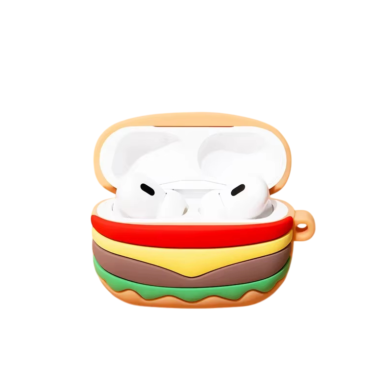 Praktisches Silikonetui für AirPods Pro mit Hamburger-Motiv schützt die Kopfhörer vor Stößen, Kratzern, Staub und Feuchtigkeit. Ermöglicht einfachen Zugang zum Ladeanschluss und bequemen Griff. Vollständige Beschreibung