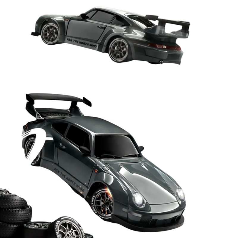 Dieses RC Drift-Auto im Maßstab 1:24 kombiniert Leistung, präzise Steuerung und modernes Design, das alle Liebhaber schneller Fahrten begeistert. Dank des Allradantriebs (4WD) und des leistungsstarken Motors erreicht es Geschwindigkeiten von bis zu 20 km/h, was dynamisches Fahren und sanftes Driften auf verschiedenen Oberflächen ermöglicht. Die Metall- und Kunststoffkonstruktion sorgt für hohe Widerstandsfähigkeit, Stabilität und Langlebigkeit, während das elegante schwarze Design dem Auto ein realistisches Rennfahrzeug-Aussehen verleiht.