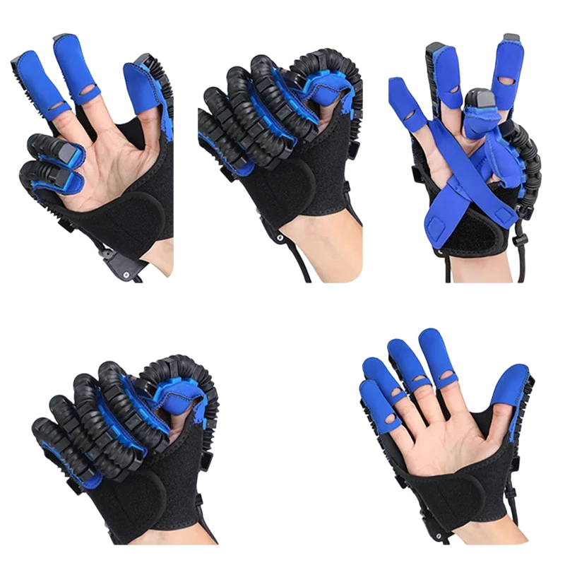 Diese rehabilitationsrobotischen Handschuhe sind ein modernes Hilfsmittel zur Regeneration von Fingern und Händen nach Verletzungen, Schlaganfällen oder chirurgischen Eingriffen. Sie sind für effektives Training der Feinmotorik, Muskelstärkung und Wiederherstellung der natürlichen Beweglichkeit konzipiert. Die Handschuhe werden über eine Steuerungseinheit mit übersichtlichem Display bedient, die es ermöglicht, Geschwindigkeit und Intensität der Bewegung anzupassen. Dank USB-Stromversorgung ist die Anwendung einfach, sicher und auch für die häusliche Rehabilitation geeignet.