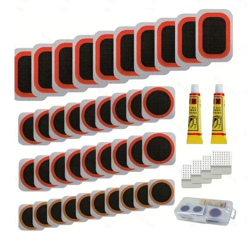 Reparaturset für Fahrradschläuche 44 Teile Gummiflicken Kleber Kaltmischung Reparaturset Reifen Mountainbike Straßenrad Ohne Hebel