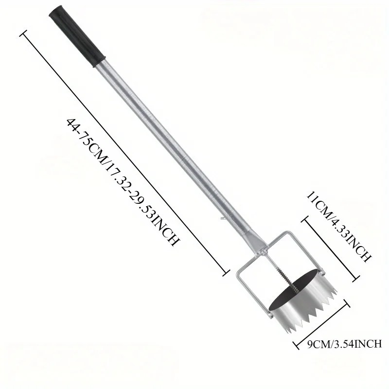 Dieser robuste Metall-Lochstanzer ist so konzipiert, dass er die Arbeit bei der Pflege und dem Anbau in Gewächshäusern erleichtert. Mit den Abmessungen 44–75x9x11 cm bietet er die ideale Größe für praktische und effektive Nutzung. Das Werkzeug ist mit einem teleskopierbaren Griff ausgestattet, der es ermöglicht, die Länge nach Bedarf einzustellen und so eine bequeme Nutzung ohne ständiges Bücken zu gewährleisten.