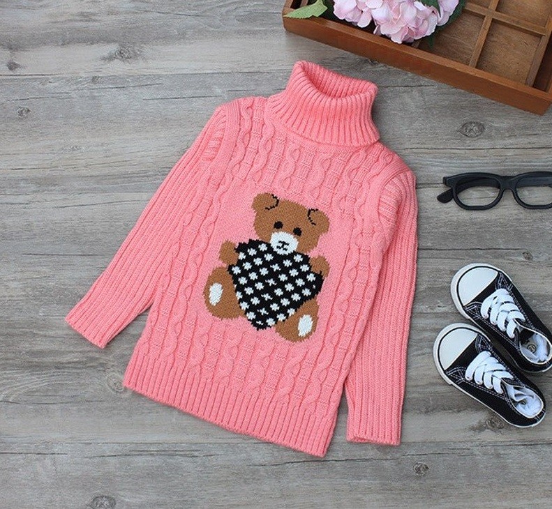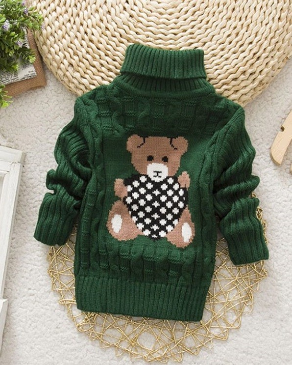 Rollkragenpullover für Kinder mit Teddybär J2889