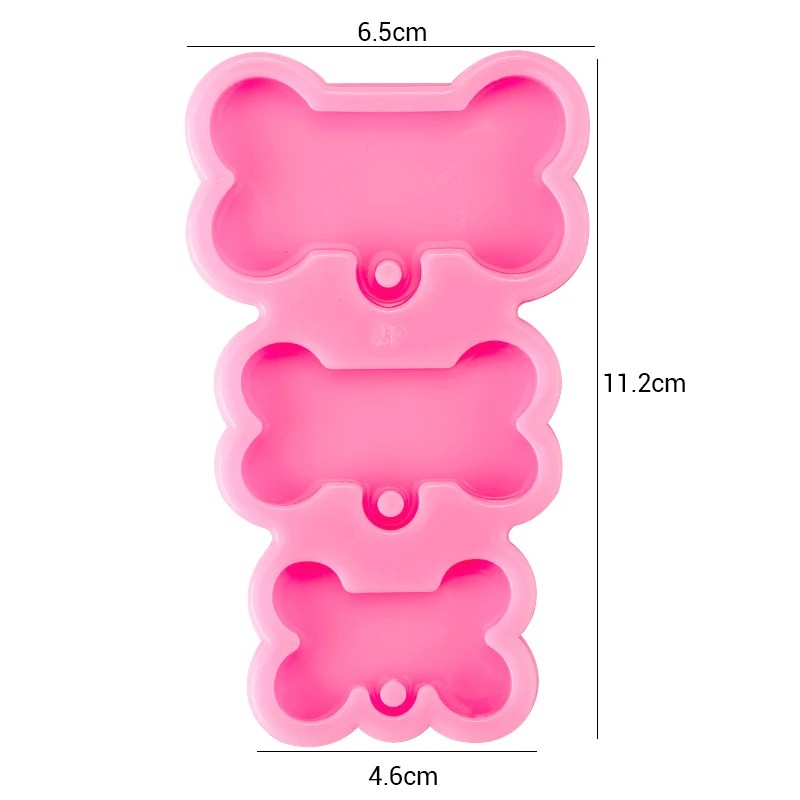 Rosa Silikonform 3 Knochen 11,2 x 6,5 cm zum Gießen von Harz Herstellung von Anhängern Schlüsselanhängern Dekorationen und originellen Accessoires für Hundefreunde