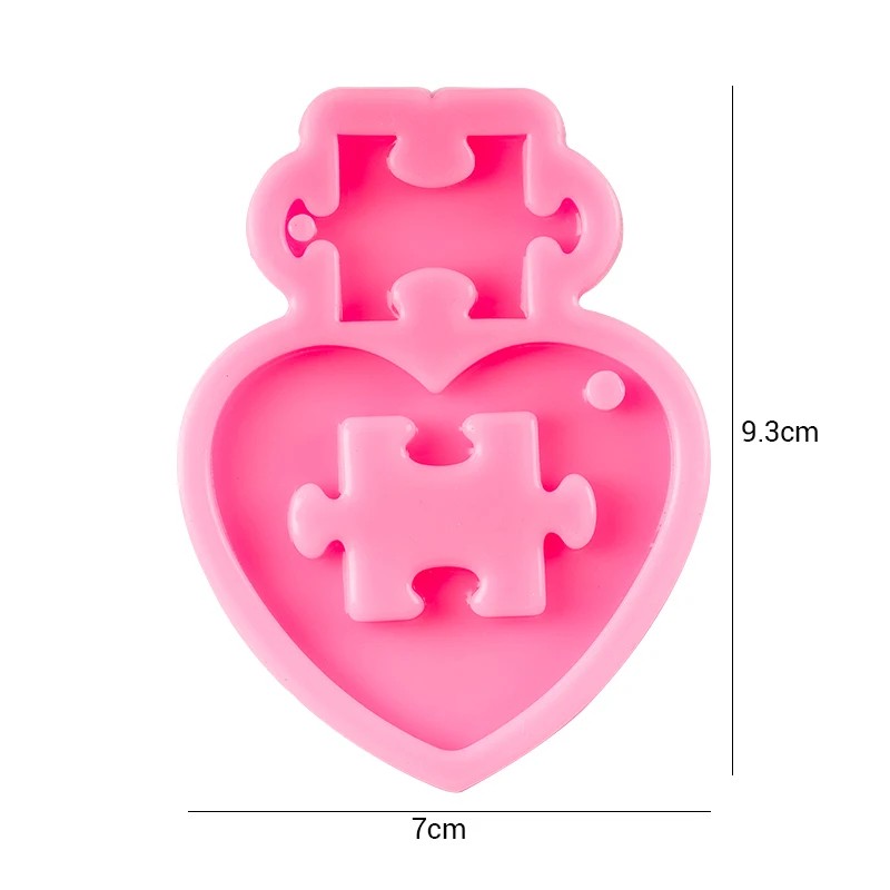 Silikonform in Herzform mit Puzzle-Teil. Geeignet für Harz, Seife und Wachs. Ideal zur Herstellung von Anhängern und originellen Geschenken. Vollständige Beschreibung