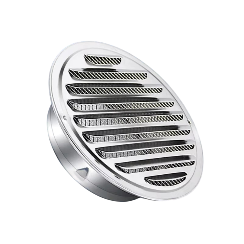 Dieses runde Lüftungsgitter mit einem Durchmesser von 100 mm und den Abmessungen 98x145x40 mm ist aus hochwertigem Edelstahl 201 gefertigt, der hohe Widerstandsfähigkeit gegen Feuchtigkeit, Korrosion und mechanische Abnutzung gewährleistet. Es dient der Gewährleistung einer natürlichen Luftzirkulation zwischen Innen- und Außenbereich und verhindert das Eindringen von Insekten und kleinen Schädlingen dank des integrierten Metallschutzgitters. Das elegante Design aus Edelstahl ist sowohl für den privaten als auch für den industriellen Einsatz geeignet – beispielsweise in Badezimmern, Küchen, Technikräumen oder Lagerräumen. Dank seiner Konstruktion ermöglicht es einen kontinuierlichen Luft- und Feuchtigkeitsabfluss, wodurch ein gesundes Raumklima aufrechterhalten wird.