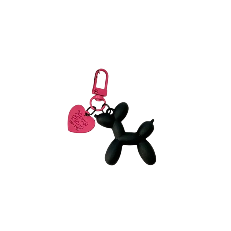 Niedlicher Schlüsselanhänger mit einem Ballon in Form eines Hundes und einem Herz aus Harz, der Schlüssel und Handtaschen schmückt. Tolle Geschenkidee für Hundefreunde. Vollständige Beschreibung
