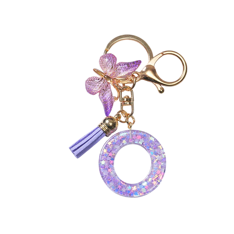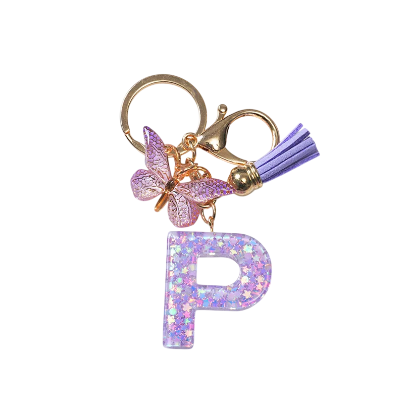Schlüsselanhänger 4 cm Harz Schlüsselanhänger Lila Initialen und Schmetterling Dekorative Verzierung für Handtasche Rucksack Geschenk für Frauen