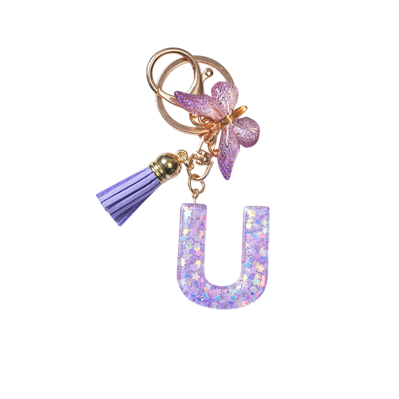 Startseite Startseite Kleidung und Accessoires Damenbekleidung Accessoires für Damen Schlüsselanhänger Schlüsselanhänger 4 cm Harz Schlüsselanhänger Lila Initialen und Schmetterling Dekorative Verzierung für Handtasche Rucksack Geschenk für Frauen