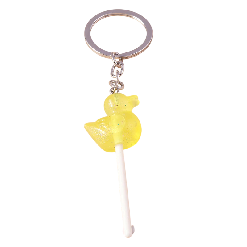 Schlüsselanhänger mit Lutscher 12 cm Harzanhänger in Form einer Ente Süße Dekoration für Schlüssel Rucksack Handtasche Geschenk für Kinder