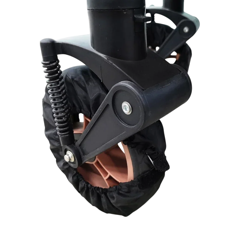 Praktische Abdeckungen für die Räder des Kinderwagens aus strapazierfähigem Oxford-Stoff schützen den Innenraum des Autos und den Boden vor Schmutz nach Spaziergängen bei Regen oder Schlamm. Vollständige Beschreibung