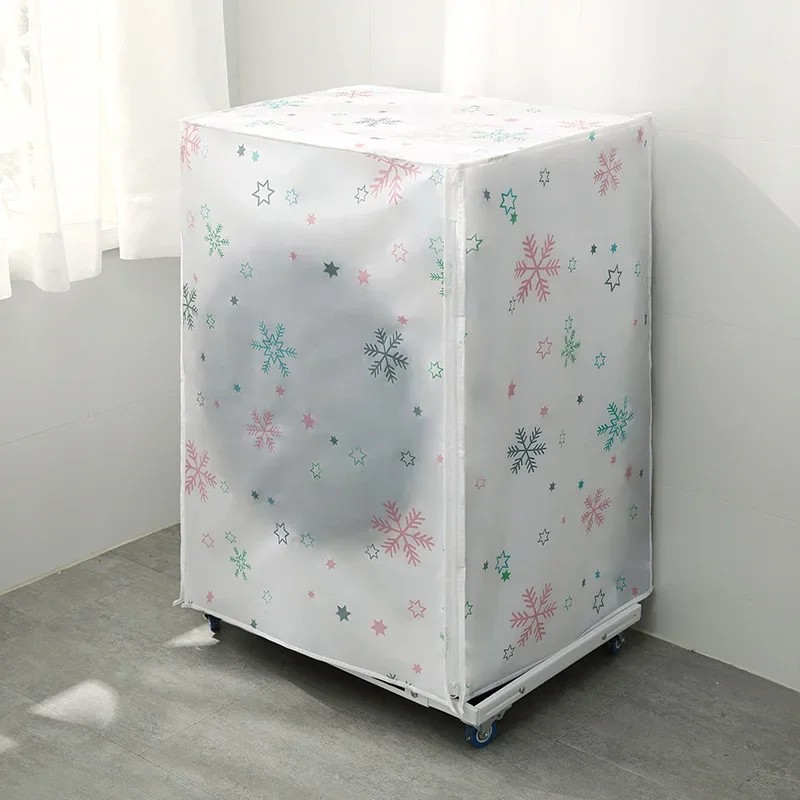 Schutzhülle für die Waschmaschine 62 x 55 x 86 cm Bunte Schneeflocken Weiß-transparente Hülle mit Reißverschluss für Frontlader