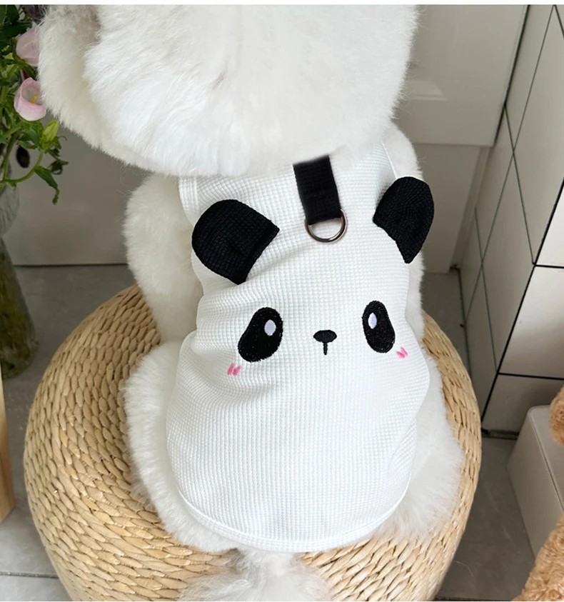 Schwarz-weiße Hundeweste M Niedlicher Anzug mit Pandagesicht Leine Halterung Bequeme Stoffjacke für Hunde 2,5–3,5 kg 40 cm Brust 29 cm Rücken