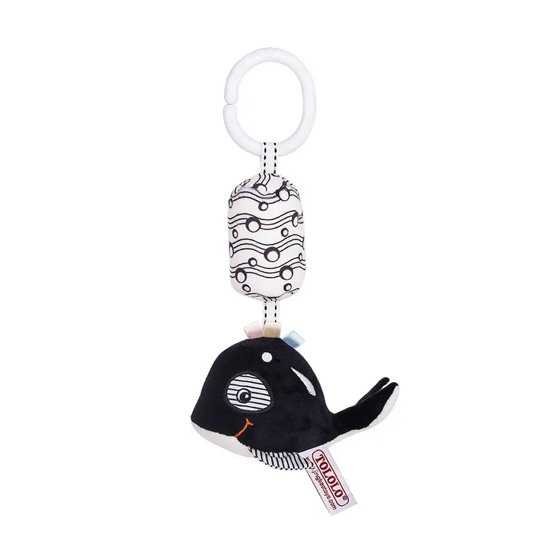 Schwarz-weißes Rasselspielzeug für den Kinderwagen mit Wal-Motiv 27 cm Entwicklungs-Spielzeug für Babys Sinnesstimulation Hängespielzeug für Kinder