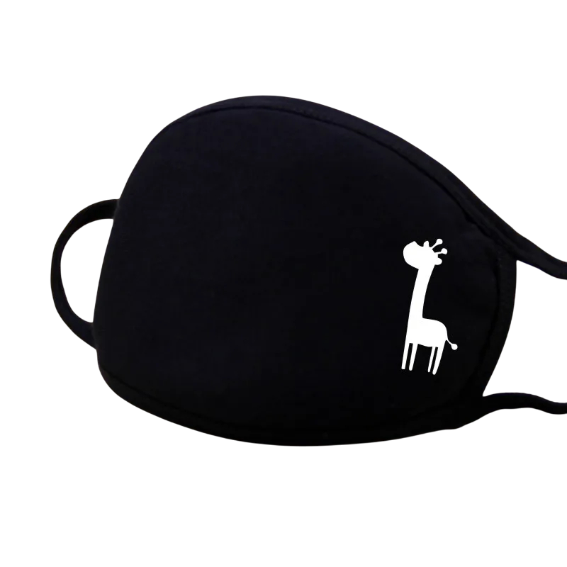 Schwarze Baumwoll-Winter-Wärme-Polo-Gesichtsmaske Unisex verdickte Mundmaske mit Cartoon-Muster einer Giraffe Kälteschutz