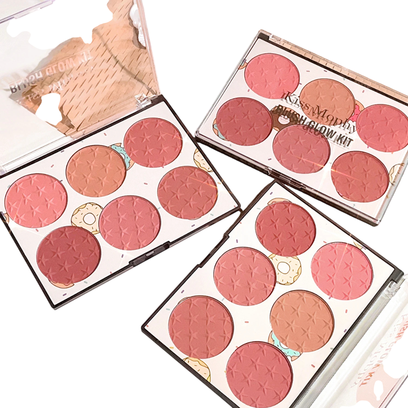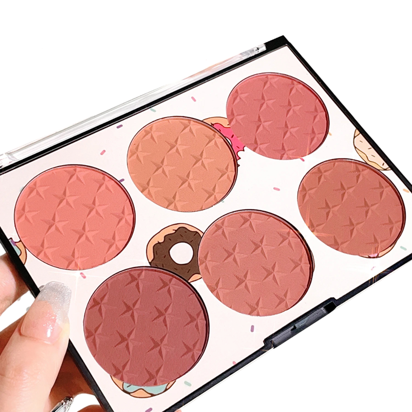 Sechsfärbige Puderrouge-Palette 6 Farbtöne Wasserfeste Kosmetikpalette für das Gesicht Motiv amerikanischer Donut Schichtbarer Pigment