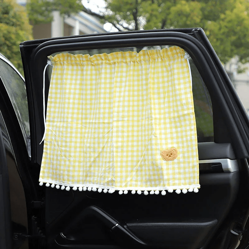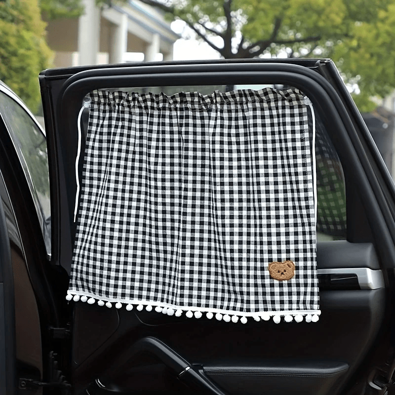 Startseite Startseite Auto und Motorrad Innenraumzubehör Autosonnenschutz Seitenfenster-Vorhang mit Saugnäpfen Karierter Design mit gesticktem Bären Dekoration für das Kinderzimmer Sonnenschutz