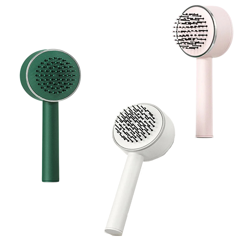 Praktische selbstreinigende Haarbürste mit Massagezähnen und gleitendem Mechanismus für schnelle Reinigung, schonendes Entwirren und komfortablem täglichen Gebrauch. Vollständige Beschreibung