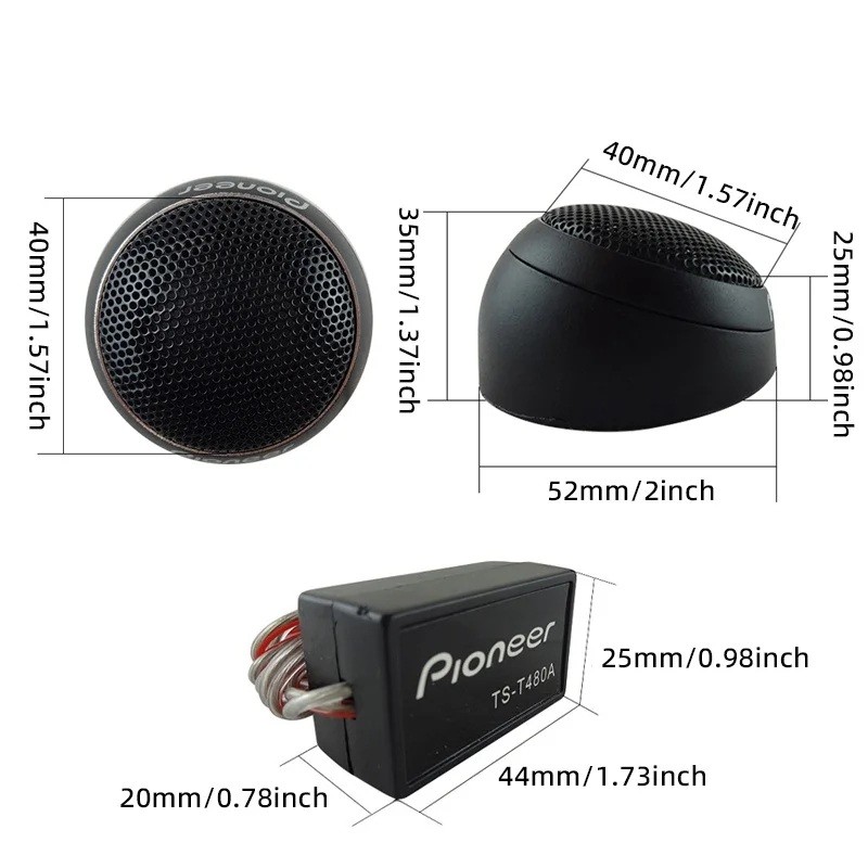 Dieses Set von Hochtonlautsprechern für Autos ist für Fahrer gedacht, die die Klarheit und Lesbarkeit der Höhen in ihrem Audiosystem verbessern möchten. Die Lautsprecher sind kompakt, unauffällig und aufgrund ihrer Form für verschiedene Installationsarten im Innenraum des Fahrzeugs geeignet.
