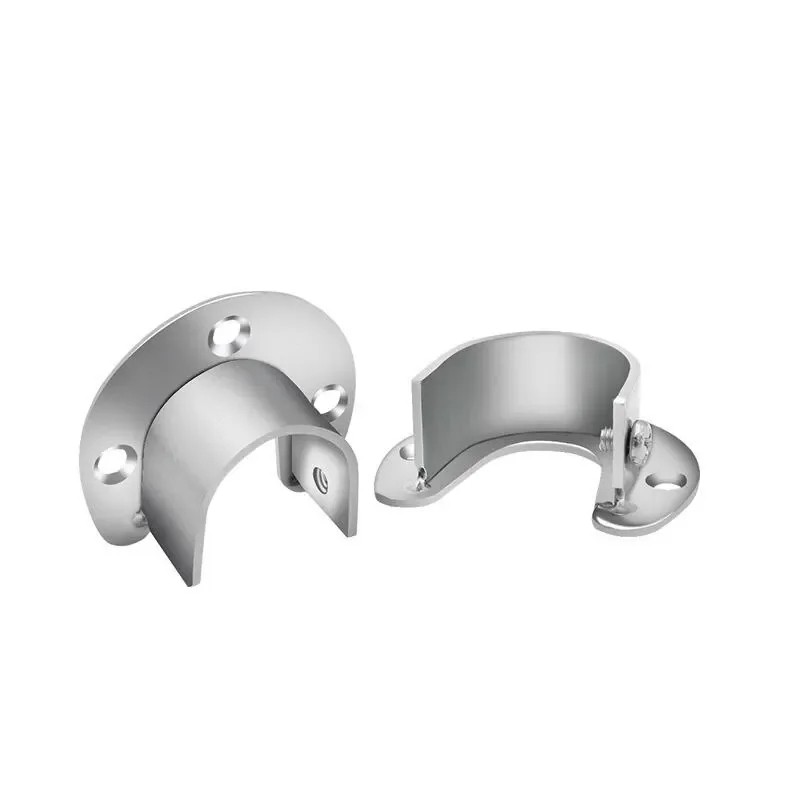 Kompakter Metallhalter, der für die feste Befestigung kleinerer Kleider- und Gardinenstangen in Möbeln und Innenräumen vorgesehen ist. Vollständige Beschreibung