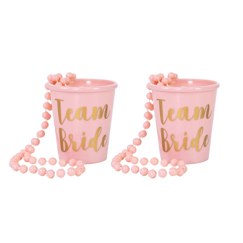 Set 2 Stück Plastik Partybecher mit Kette Team Braut Getränkebecher für Junggesellenabschied