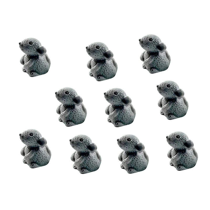 Set mit 10 Stück Mini-Figur grau Maus 1,5 × 1,2 cm Harz-Dekoration für Mini-Gärten, Blumentöpfe oder Aquarien