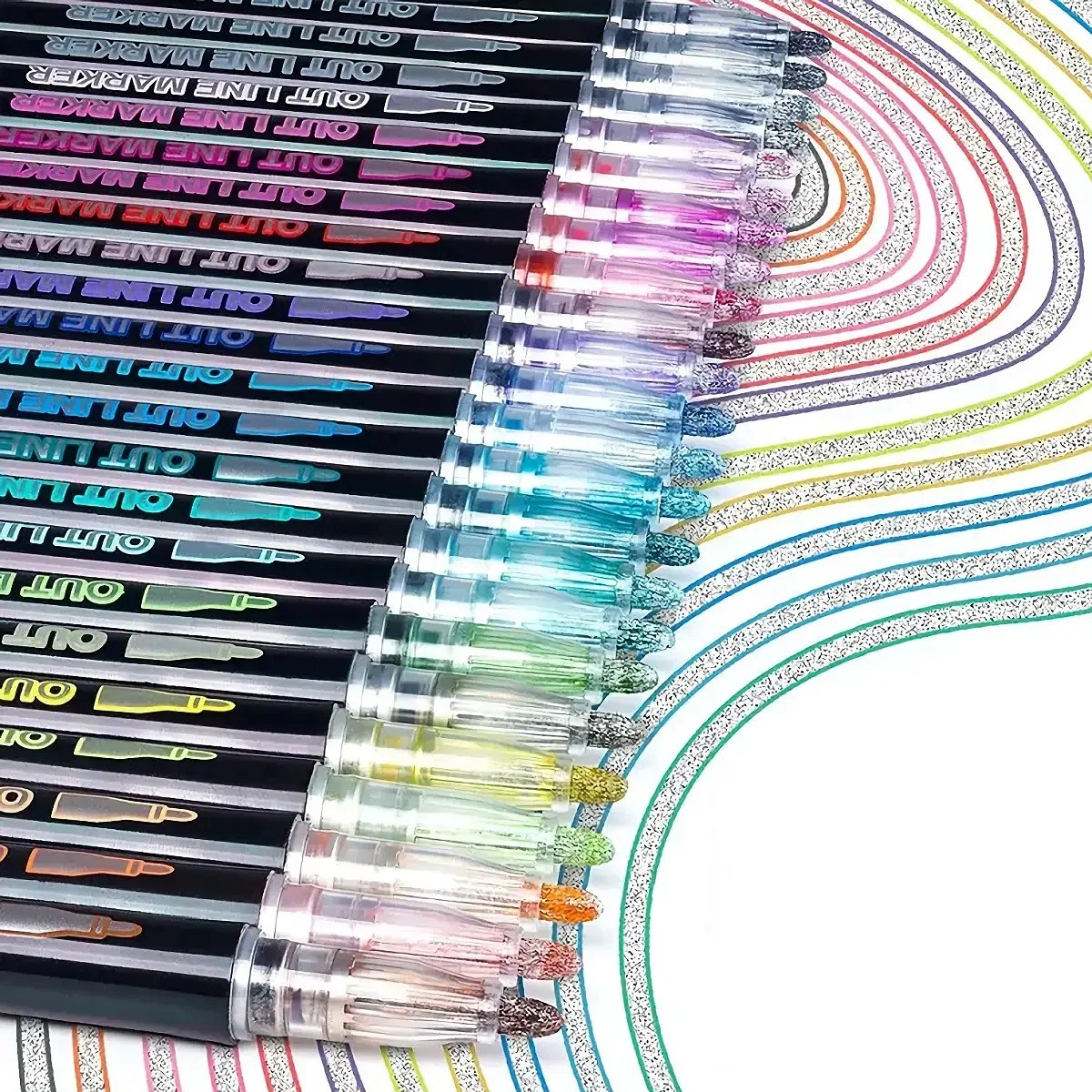 Startseite Startseite Haushalt Bürobedarf Schreibzubehör Marker und Filzstifte Set mit 12 doppellinigen Markern und metallic Effekt Glitzer Marker für kreatives Schreiben und Zeichnen Einzigartige Marker mit metallischem Rand