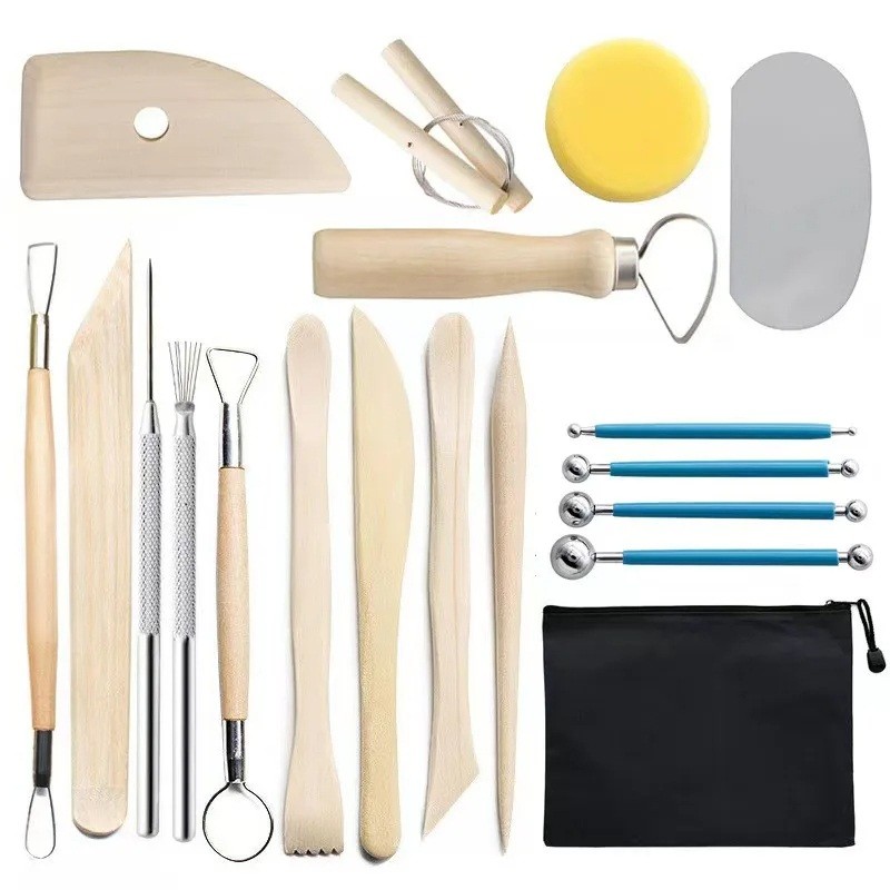 Dieses 19-teilige Werkzeugset ist ideal für die Arbeit mit keramischem Ton, Wachs, Polymermaterialien und anderen Modellierstoffen. Es enthält eine Kombination aus Holz-, Metall- und Kunststoffwerkzeugen, die präzises Formen, Schnitzen, Glätten und Verzieren der Oberfläche ermöglichen. Dank der vielfältigen Zusammensetzung der Werkzeuge ist es sowohl für Anfänger als auch für fortgeschrittene Kreative geeignet.