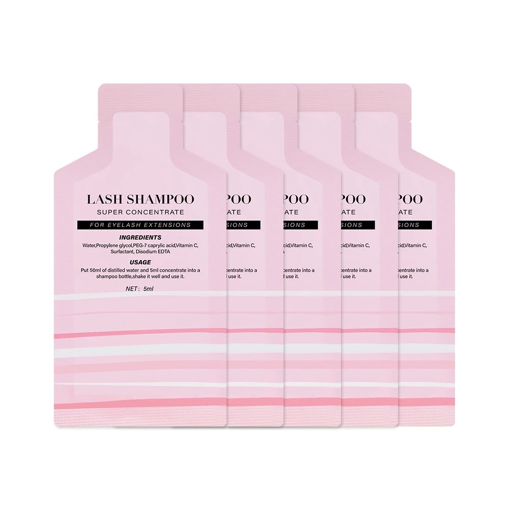 Set mit 5 Stück Konzentraten à 5 ml zur Zubereitung von Schaumshampoo für Wimpern. Geeignet zur Reinigung von verlängerten und natürlichen Wimpern. Vollständige Beschreibung