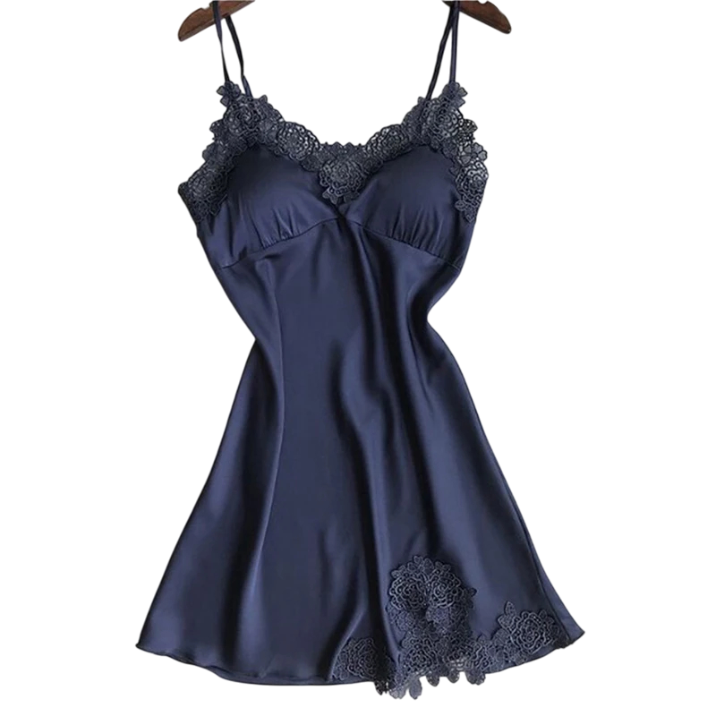 Startseite Startseite Kleidung und Accessoires Damenbekleidung Nachtwäsche für Damen Nachthemden für Damen Sexy Damen Nachthemd mit Spitze Einfarbiges lockeres Hausunterwäsche mit V-Ausschnitt Bequemer elastischer Stoff Polyester Spandex