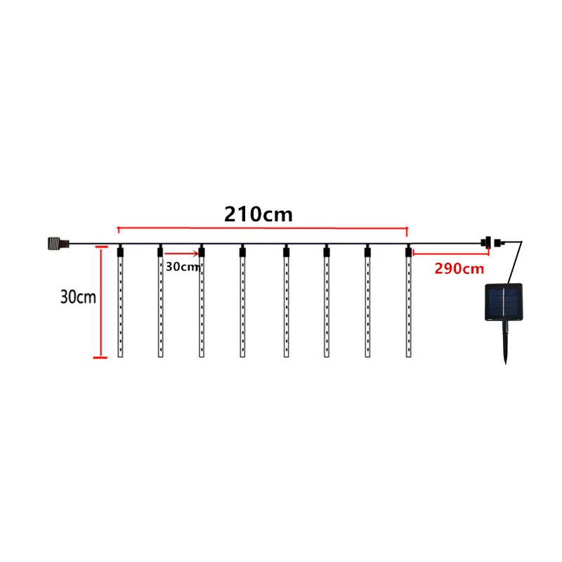 Solar LED Licht 210 cm Meteoritenregen 8 Röhren à 30 cm Wasserfestes Außenlicht mit 290 cm Netzkabel aus transparentem PC