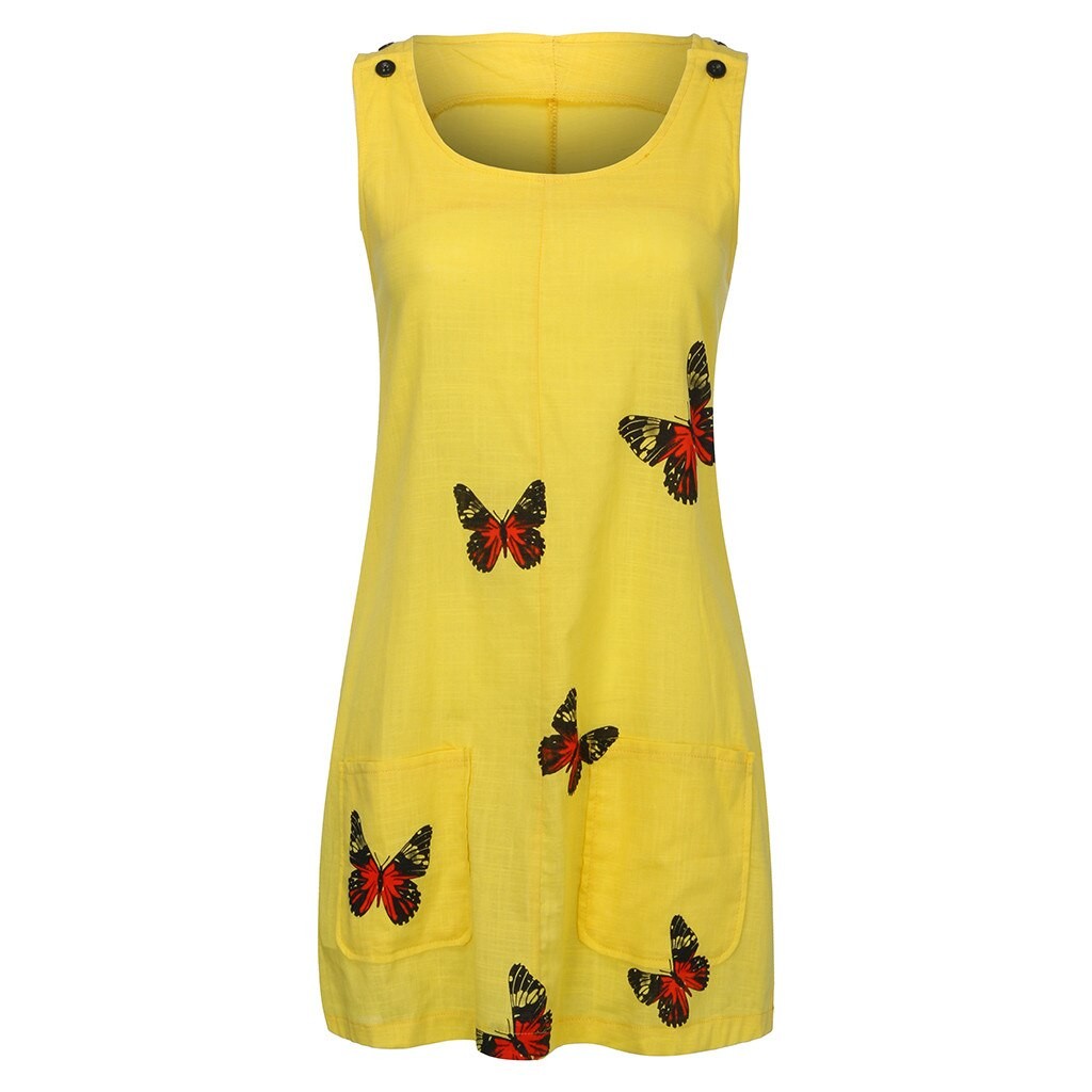 Wunderschönes ärmelloses Sommerkleid mit zartem Schmetterlingsprint.