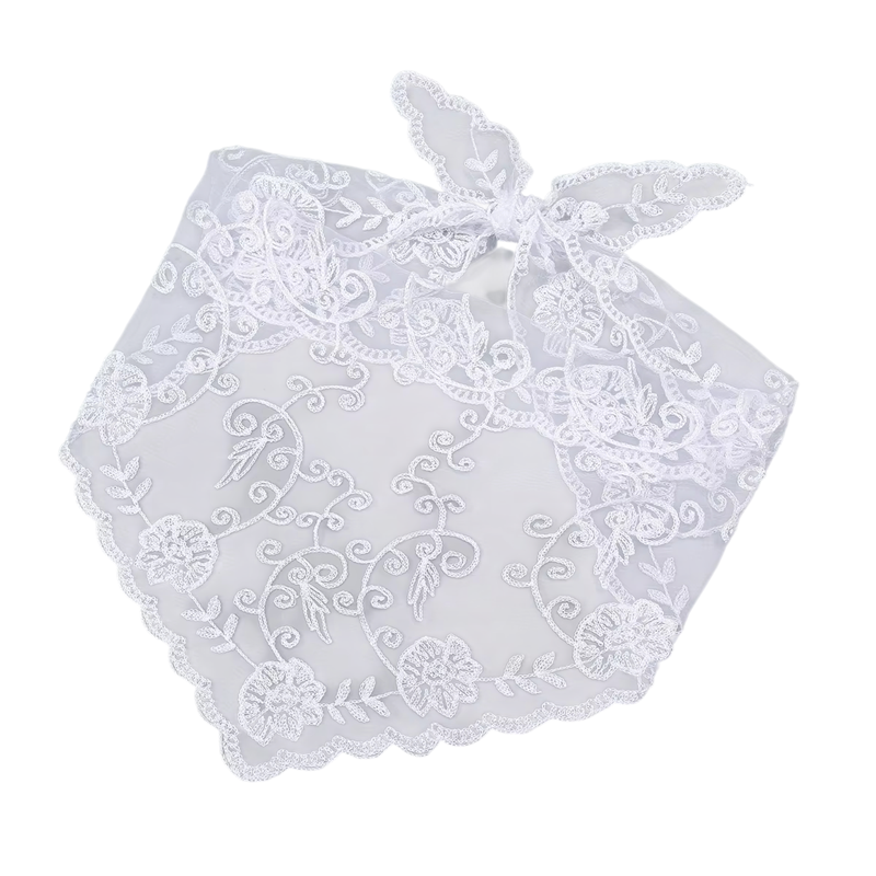 Leichtes Spitzen-Tuch mit Blumenmuster ist ideal für Kopf, Hals und Haare. Elegantes Accessoire geeignet für alle Jahreszeiten. Vollständige Beschreibung