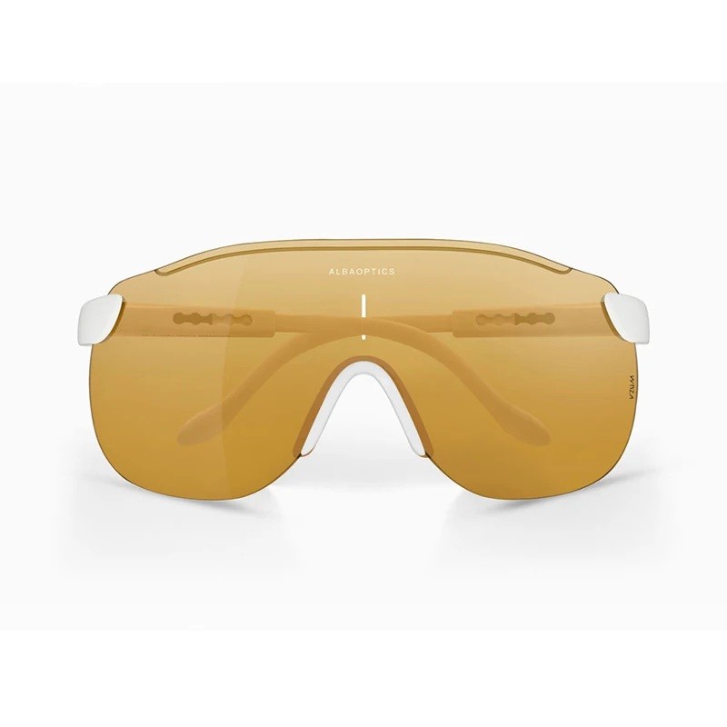 Leichte Sportbrille mit weißen Rahmen und farbigem Glas, geeignet für Radfahren, Mountainbiking und andere Outdoor-Aktivitäten. Vollständige Beschreibung