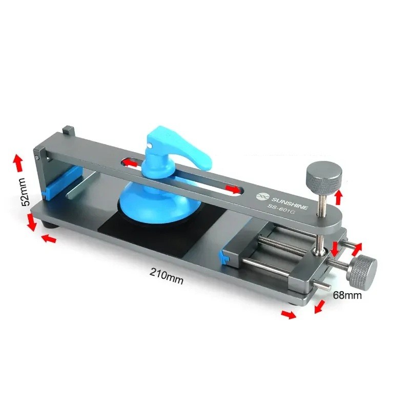 SS-601G ist die ideale Wahl für jeden, der nach einer zuverlässigen, präzisen und sicheren Lösung für den Service von Mobiltelefonen ohne den Einsatz von Wärme sucht. Es erhöht die Effizienz der Arbeit, minimiert das Risiko von Fehlern und hilft, professionelle Ergebnisse selbst bei anspruchsvollen Reparaturen zu erzielen. Die Konstruktion des Werkzeugs ist mit verstellbaren Abmessungen entworfen, um sicher mit Mobiltelefonen verschiedener Größen arbeiten zu können.