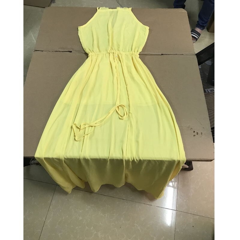 Sportlicher trägerloser Stil und langer, fließender Rock mit hohem Schlitz.