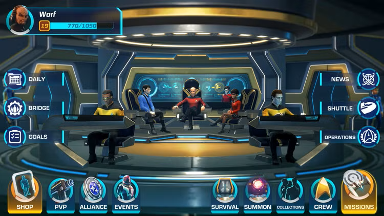 Haben Sie jemals davon geträumt, Spocks vulkanischen Nerven zu kontrollieren oder gegen Worf mit seinem tödlichen Bat'leth zu kämpfen? Jetzt ist Ihre Chance! Rekrutieren und kommandieren Sie über 90 ikonische Charaktere aus der Welt von Star Trek, einschließlich Kirk, Spock, Picard, Janeway, Data, Burnham, Pike und vielen anderen! Schicken Sie Ihr Team auf kritische Missionen, die die Fähigkeiten und Einfallsreichtum Ihrer Crew auf die Probe stellen. Verdienen Sie spezielle Belohnungen, indem Sie Sammlungen von Charakteren basierend auf den Shows, in denen sie auftraten, oder den Eigenschaften, die sie haben, abschließen. Außerdem können Sie Kampfboni erhalten, indem Sie mehrere Charaktere aus derselben Sammlung im Kampf einsetzen.