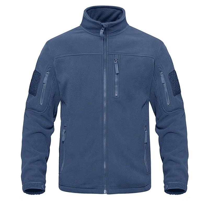 Taktische Outdoor-Fleecejacke für Herren mit mehreren Reißverschlusstaschen, hoher Kragen, Sportjacke, winddichte Wanderkleidung