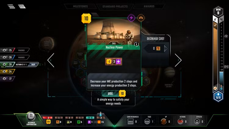 • Spielvariante: Probieren Sie die Regeln der Corporate Era für ein komplexeres Spiel aus. Diese Variante fügt neue Karten hinzu, einschließlich 2 neuer Unternehmen, und konzentriert sich auf Wirtschaft und Technologie. Dies sind Projekte, die nicht direkt zur Terraformierung beitragen, sondern die Unternehmen stärken und neue strategische Möglichkeiten ins Spiel bringen!