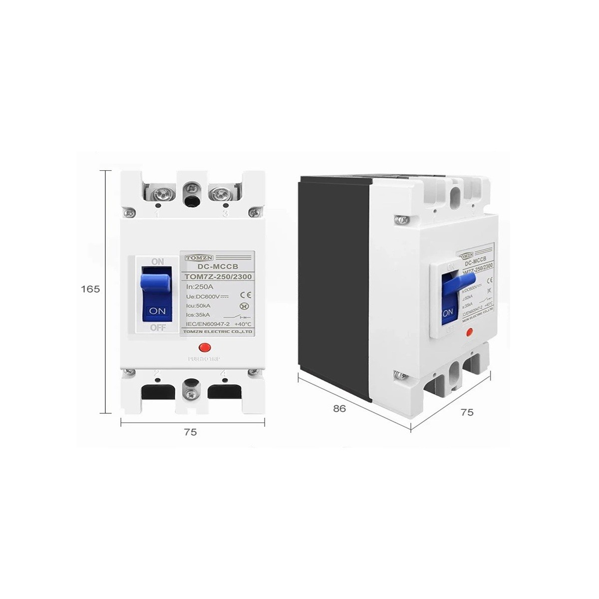 TOMZN Solar-Leistungsschalter MCCB 2P 250 A 43 x 165 x 80 mm Überlastschutz Temperaturbeständigkeit bis 105 °C sichere Steuerung der Stromversorgung für PV-Systeme