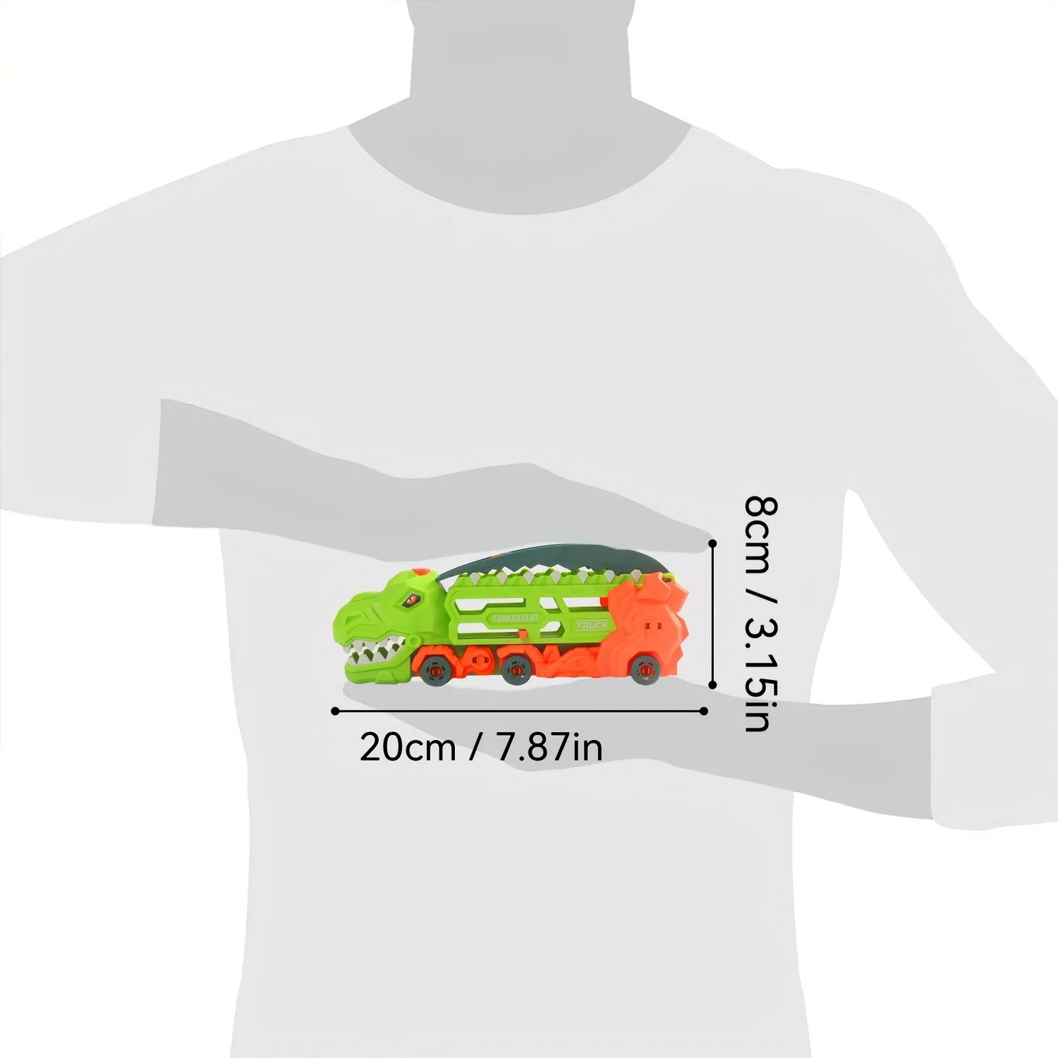 Das Transportfahrzeug mit Dinosaurier-Motiv beeindruckt auf den ersten Blick durch sein originelles Design mit dem Körper eines Dinosauriers und die funktionale Konstruktion sowie die Bahn, die den Kindern stundenlangen Spaß bietet. Hergestellt aus robustem Plastik, hält es dem kindlichen Umgang problemlos stand und passt dank der kompakten Abmessungen von 20 × 8 × 7 cm sowohl für zu Hause als auch für unterwegs. Die Kinder können ihre Lieblingsszenen mit Dinosauriern, Autos und Abenteuern auf der Straße nachspielen. Im Lieferumfang ist auch ein zufälliges kleines Auto enthalten.