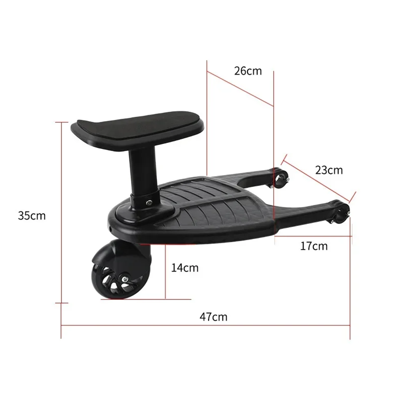 Trittbrett für den Kinderwagen für das zweite Kind mit abnehmbarem Sitz und einem Rad Tragfähigkeit 25 kg Universeller Halter Horizontale Stange PP PU